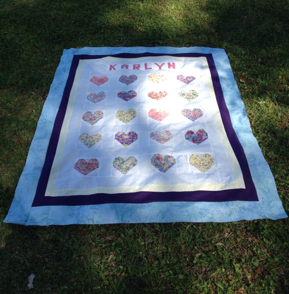 Personalize any quilt with your name or the name of someone else. Each name is added to the top of the quilt with paper pieced letters.