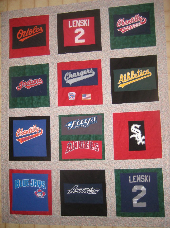 Here is a sports team memory quilt made from this families sport shirts.
